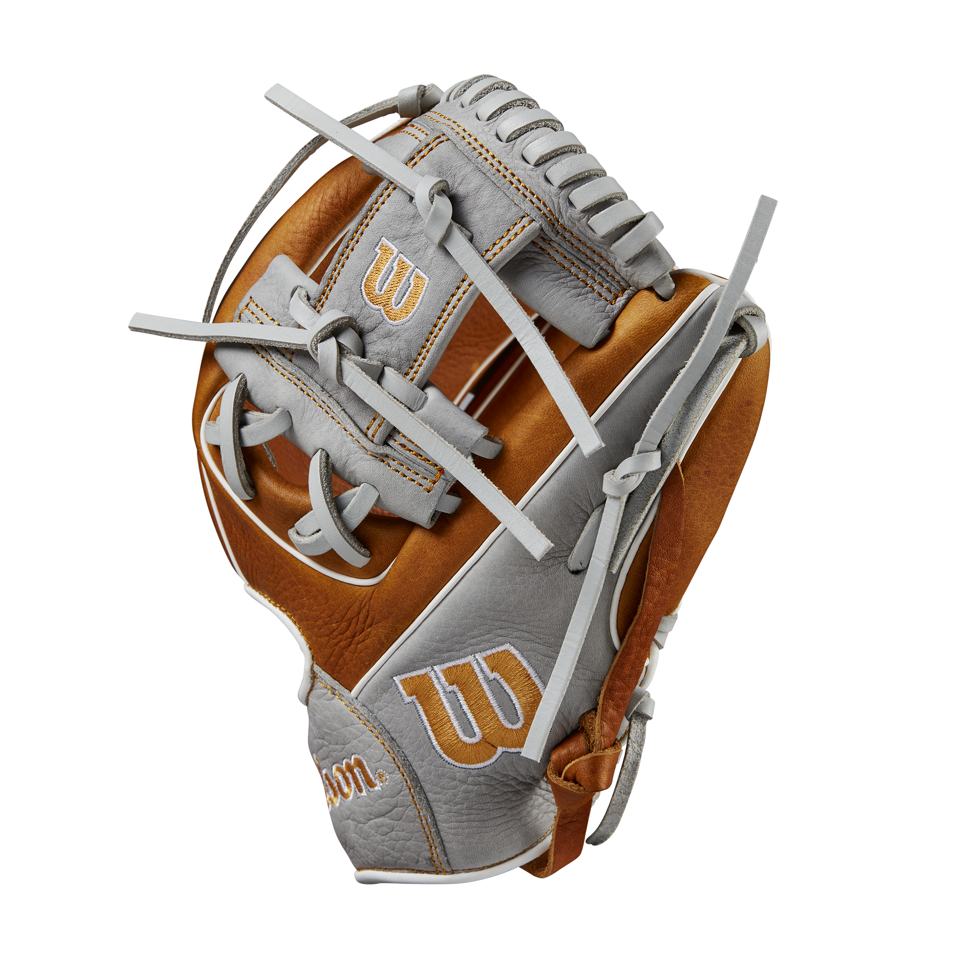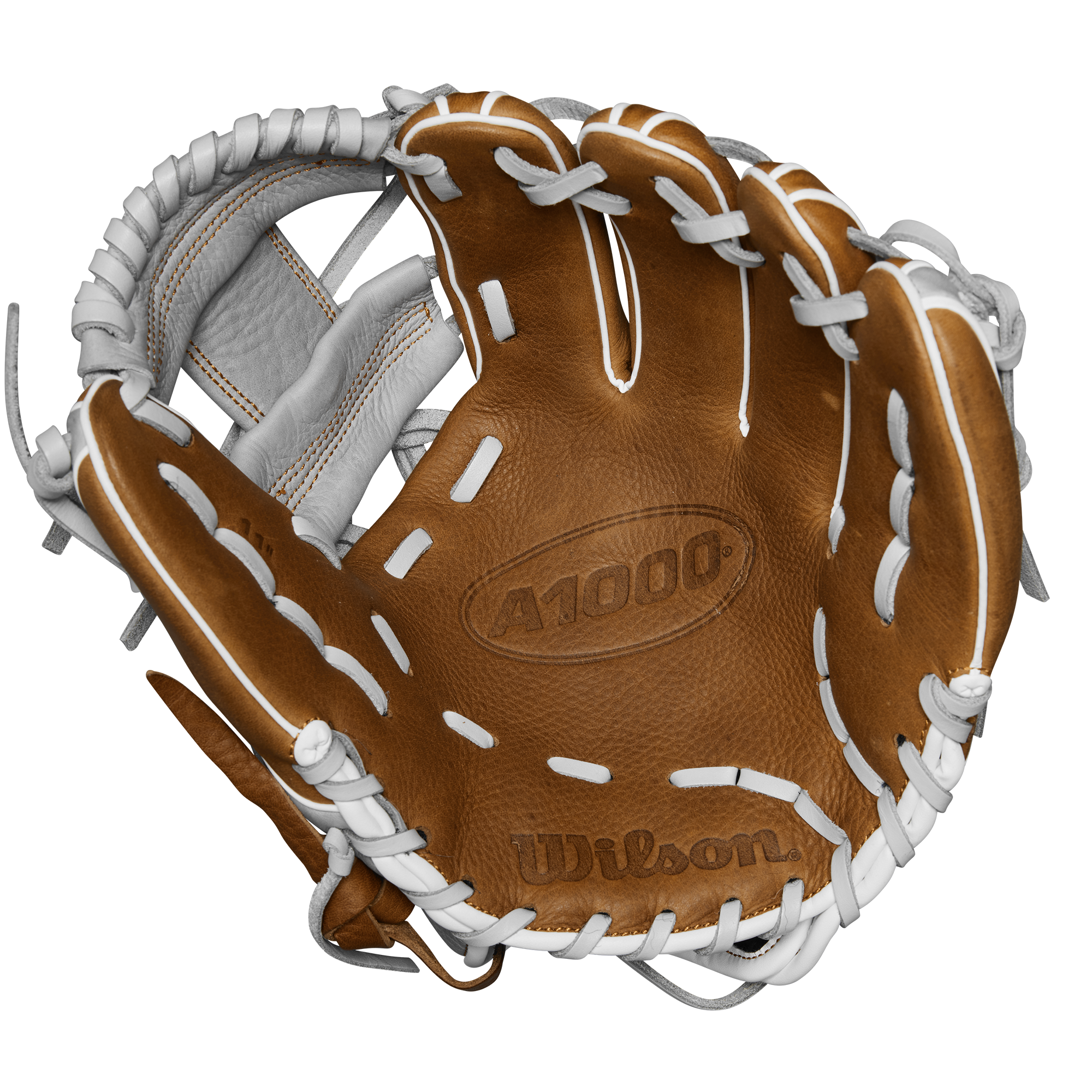 Turn the tight plays at second base, third base or shortstop with the 2024 A1000 PF11, an 11” infield baseball glove engineered with Pedroia Fit to accommodate travel ball players or teenage infielders with smaller hands. Handcrafted in the Wilson A2000® factory with Saddle Tan and Grey Full Grain Leather for a soft feel, this 11” professional style glove is ready for game action right away to take full control on the infield.