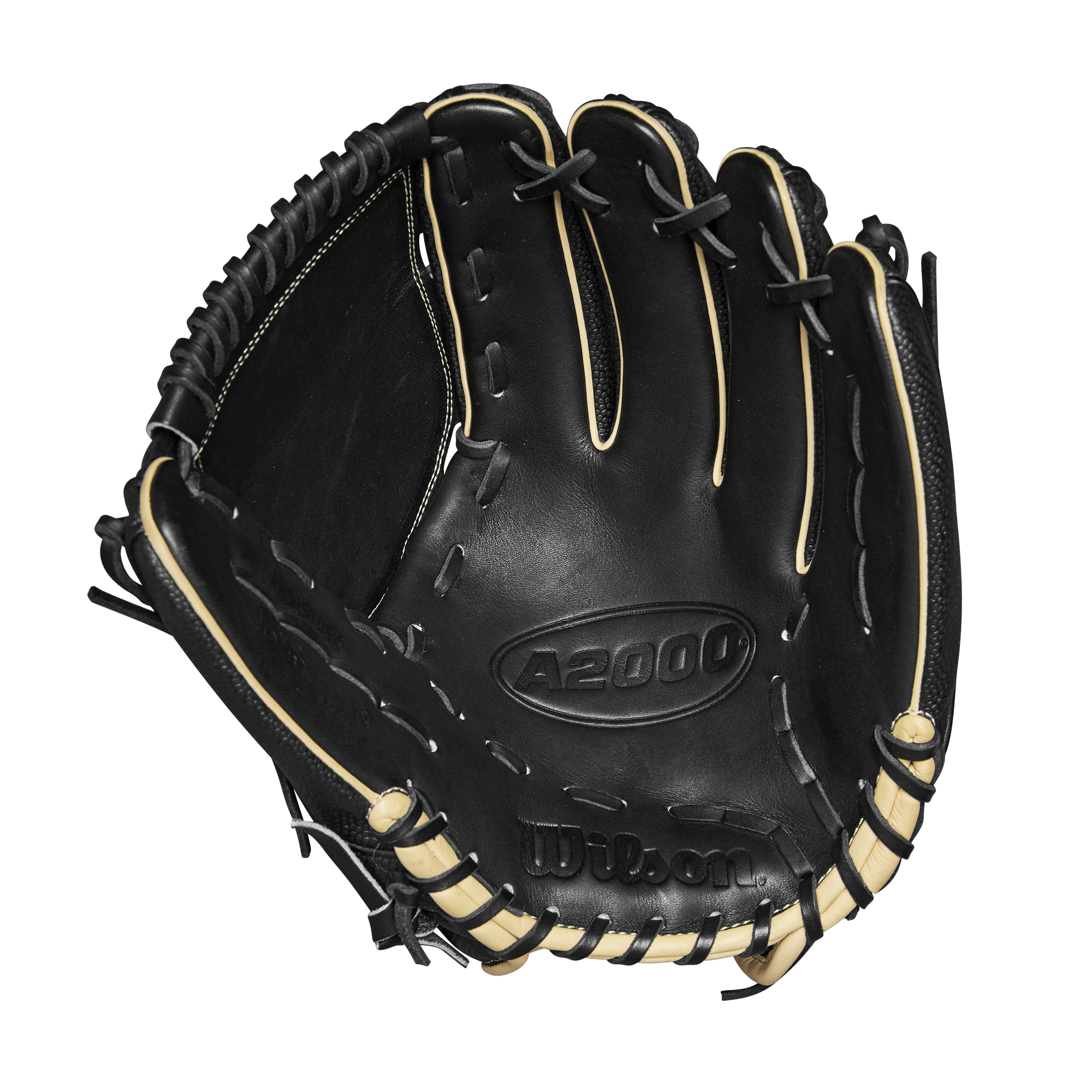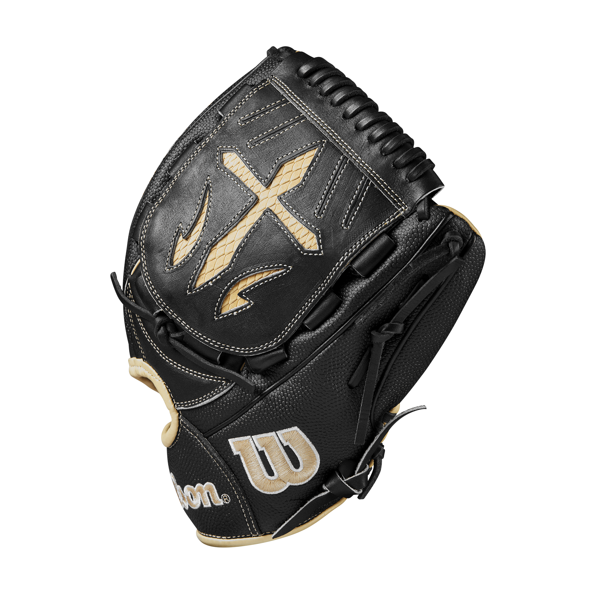 For pitchers seeking a sure fit from their glove, the A2000 B23 boasts a modified wrist strap to hug the back of the hand and wider pinky stall to accommodate multiple fingers. Wilson Master Glove Craftsman Shigeaki Aso designed the A2000 B23 to create a secure fit while pitching and fielding, helping hurlers to eliminate distractions and focus their attention on the strike zone. Inspired by Japanese design, a Closed One-piece Swordsman Web with a Blonde inlay totally obscures the ball so pitchers can keep hitters guessing. Black Pro Stock® leather offers durable performance, and Black SuperSkin™ repels moisture while reducing glove weight for improved control.