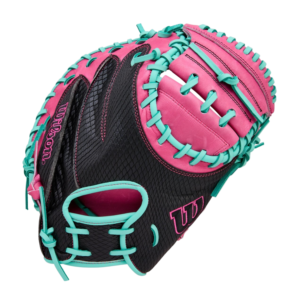 Young catchers ready to run the game, this one’s for you. Handcrafted in the Wilson Pro Stock® Factory, the A1000® CM33 is a 33” catcher’s mitt made with full grain leather that’s game-ready fast, forms to the player’s hand over time and is durable enough to handle countless innings behind the dish. Thin toe pads and a Half Moon Web design allow young players to control the strike zone and smother pitches in the dirt with ease, comfort and style.