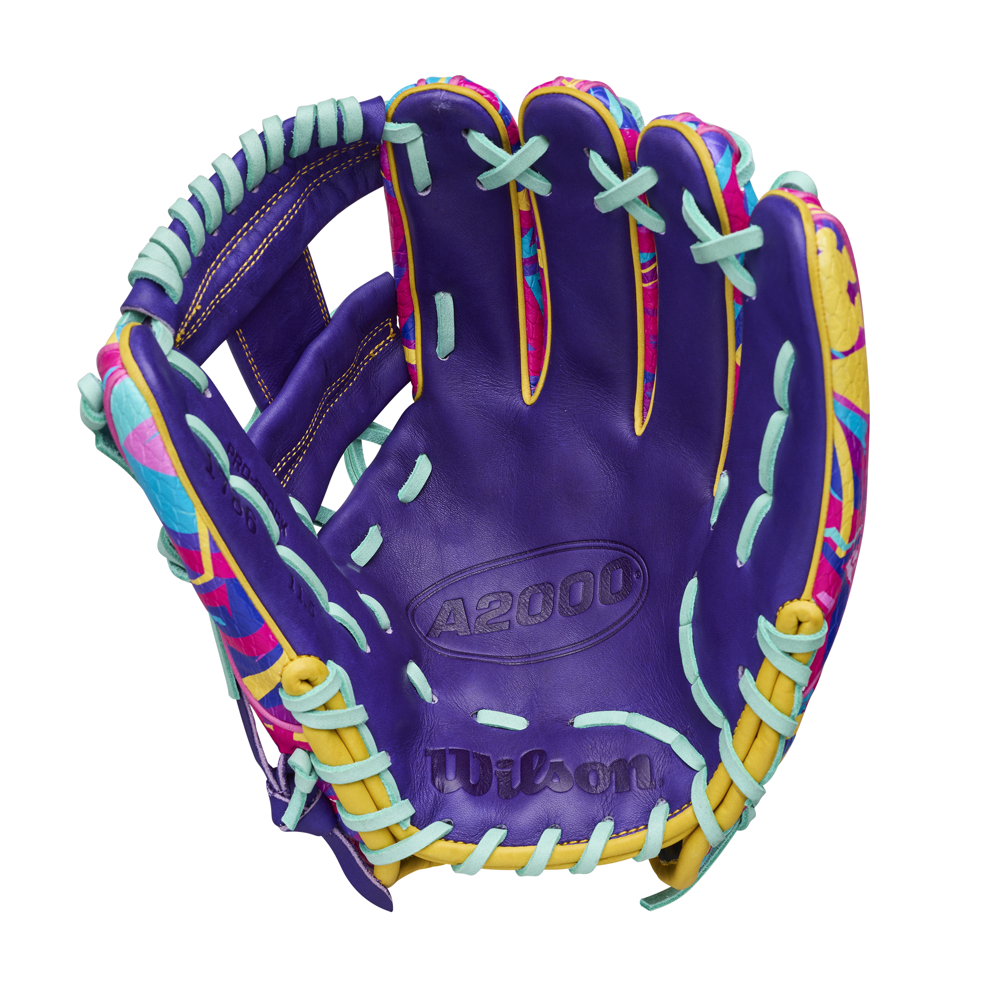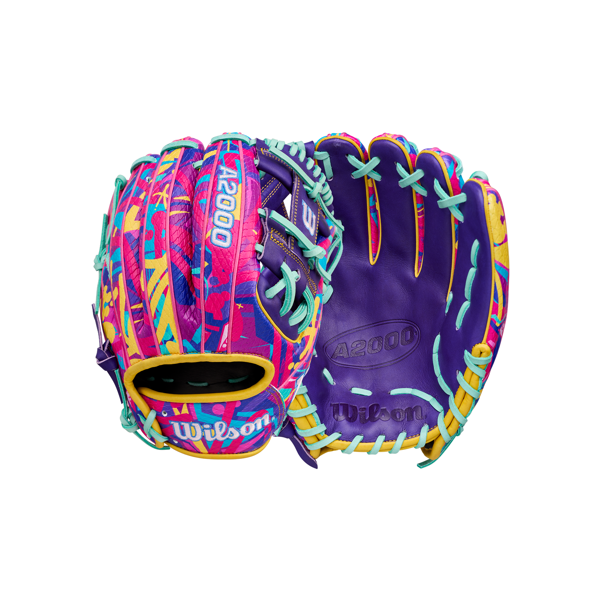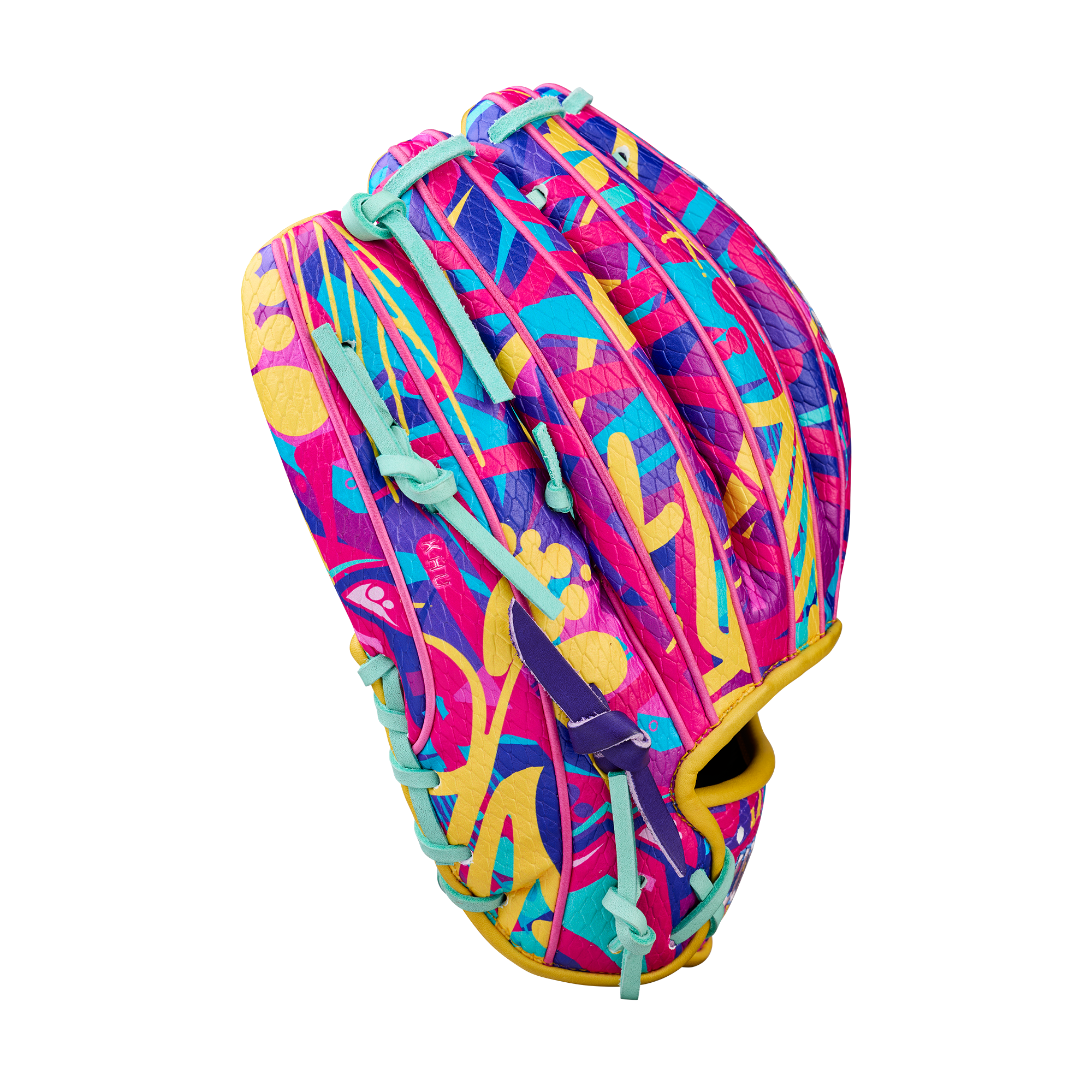The Wilson A2000 1786 January 2026 GOTM SuperSnakeSkin 11.5" Infield Glove is a stunning limited edition piece from the renowned Wilson Glove of the Month collection. Featuring a vibrant colorway of pink, purple, gold, and teal, this glove combines eye-catching style with superior performance. Crafted with Pro Stock Leather and enhanced by a durable SuperSnakeSkin backing, it's twice as strong as regular leather, ensuring longevity and reliability on the field. Designed with infielders in mind, it boasts an I-Web design and conventional open back for optimal control and comfort, while the Dri-Lex wrist lining offers ultra-breathable, moisture-wicking properties to keep your hand cool and dry during play.