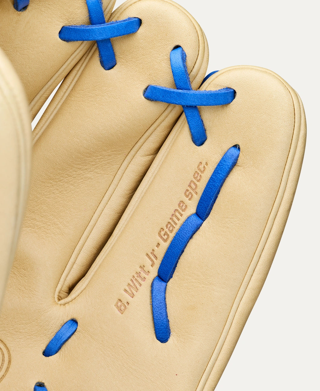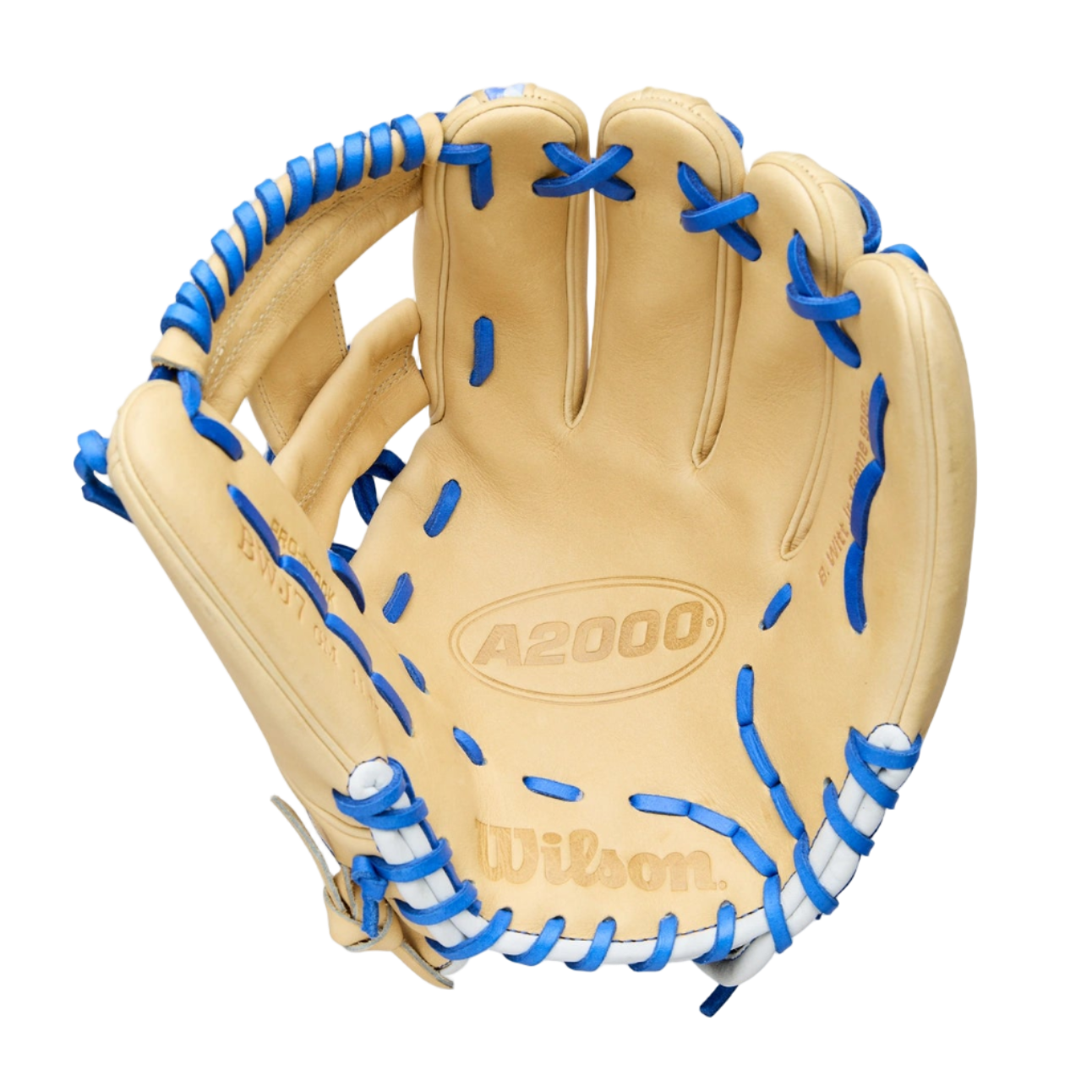 Keep things simple on the infield with Bobby Witt Jr.’s preferred 11.75” baseball glove, the Winter 2025 A2000® BWJ7 GM. The Kansas City shortstop designed his infield glove with classic Blonde Pro Stock® leather for long-lasting performance and timeless style. A splash of Royal Blue & Yellow Camo SuperSnakeSkin™ appears along the index finger panel, matching the logos and laces. Witt’s glove design, based on the A2000® 1724, features a modified wrist strap to hug the back of the wrist while accommodating multiple fingers in the pinky stall.